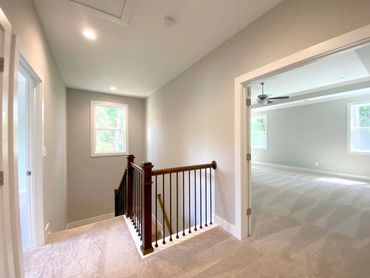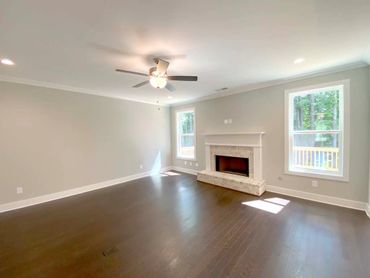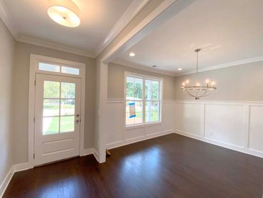 Front portico porch leads to foyer flanked by formal dining room with upgraded trim. Open, fireside family room with views of the kitchen and breakfast area. Gourmet kitchen with quartz countertops, stainless steel appliances, breakfast bar and pantry. Owner’s suite on main floor with two large walk-in closets. Vaulted owners bath with garden tub, tile shower surround with seat, dual vanities, linen closet and tile flooring. Three additional upstairs bedrooms and two baths, one shared and one private. Powder room and laundry room on the main floor. Two car garage.